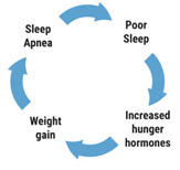 The combination of increased sleep disturbances caused by weight gain, in turn, leads to more weight gain, and then you are lost in a vicious cycle.